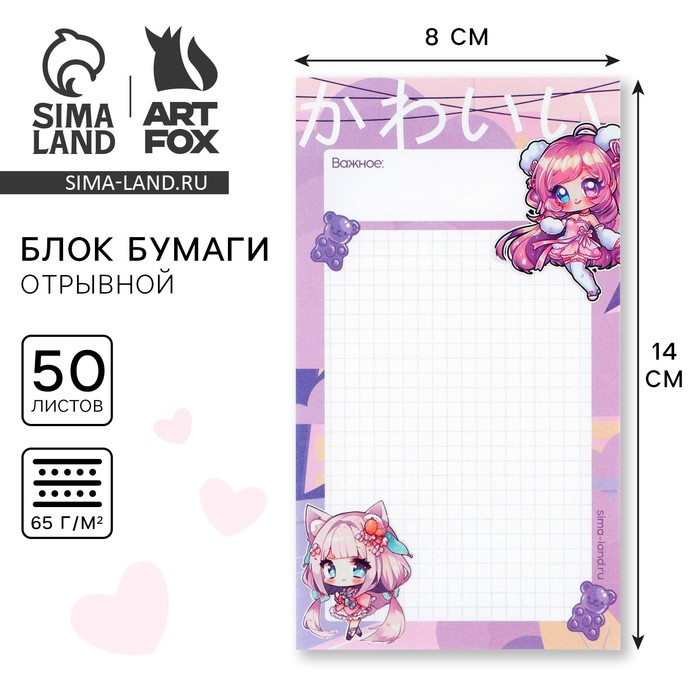 Блок для записей с отрывными листами, 50 л «Аниме»