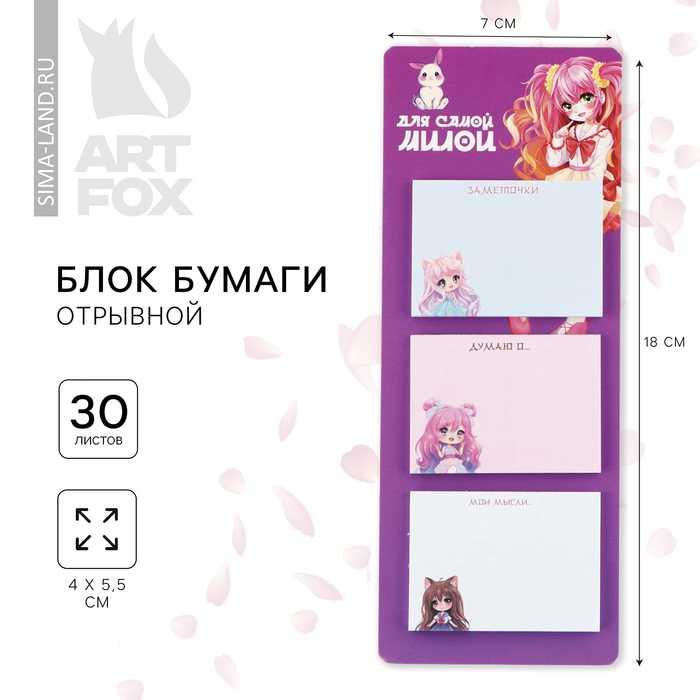 Блок для записей с отрывными листами, 30 л. «Аниме»