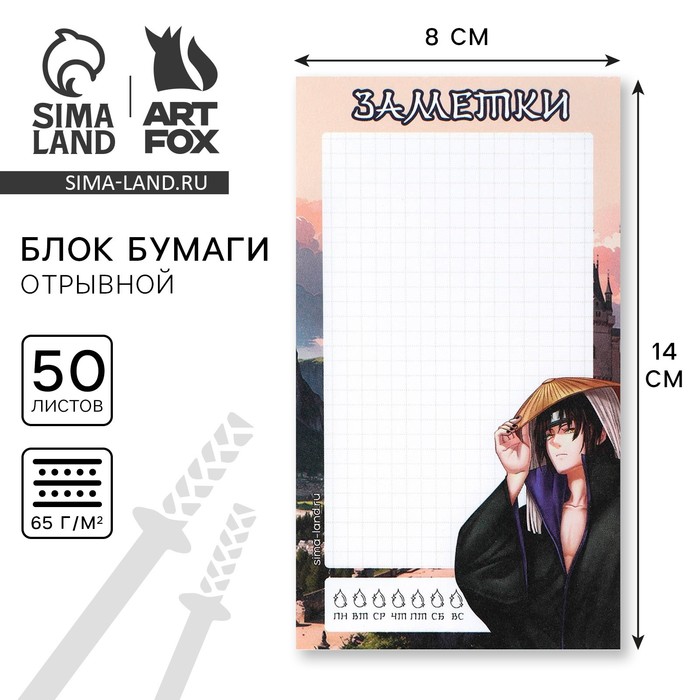 Блок для записей с отрывными листами 140 х 80 мм, 50 л. «Аниме самурай»