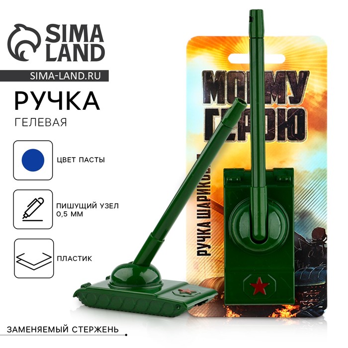Ручка прикол, гелевая, синяя паста «Танк: Моему герою» на подложке