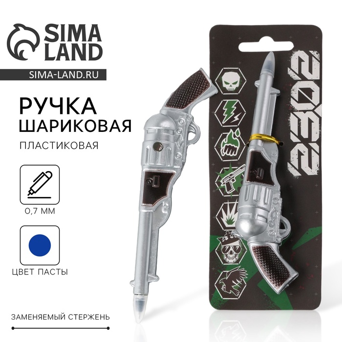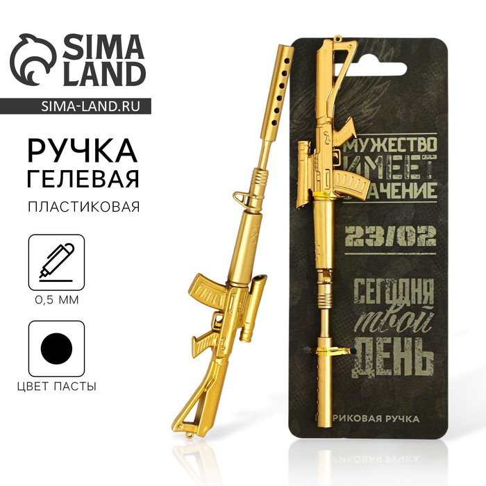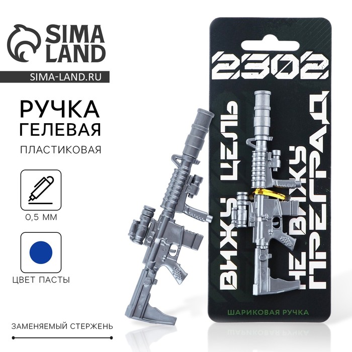 Ручка пистолет "Настоящему герою. 23 февраля", пластик, на подложке