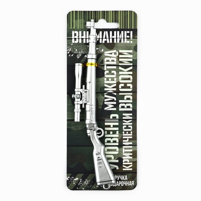 Ручка пистолет "Внимание, уровень мужества", пластик, на подложке