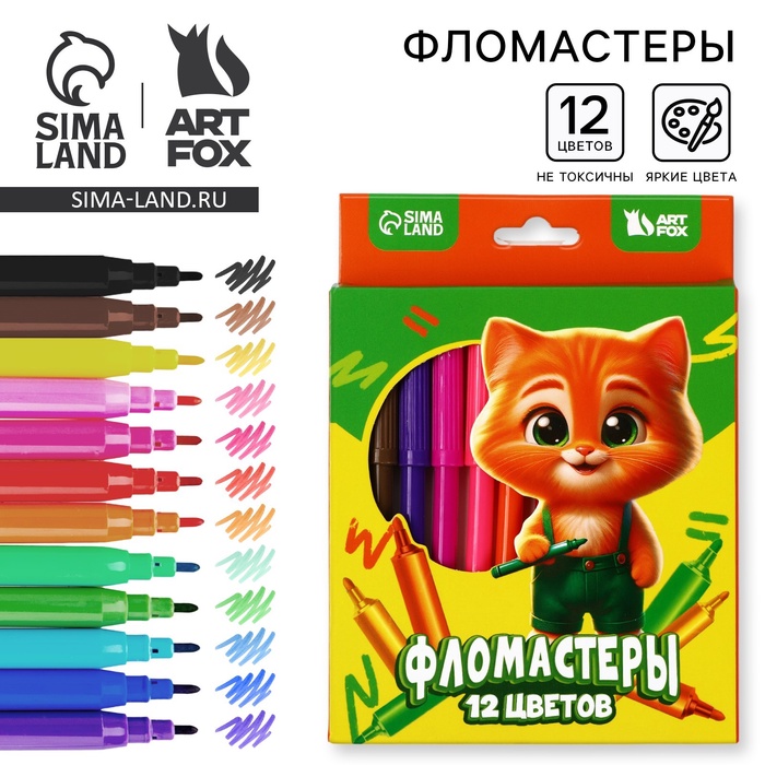 Фломастеры 12 цветов, вентилируемый колпачок, «1 сентября: Кот»