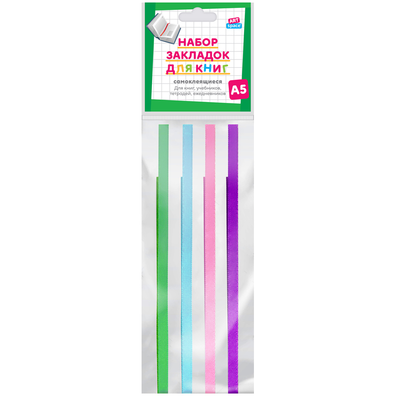 Набор закладок для книг формата А5 (ляссе с клеевым краем), ArtSpace "Bright" (4 тонкие ленты)