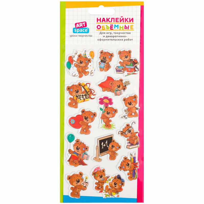 Наклейки объемные ArtSpace "Плюшевый мишка", 10*19см, пакет, европодвес