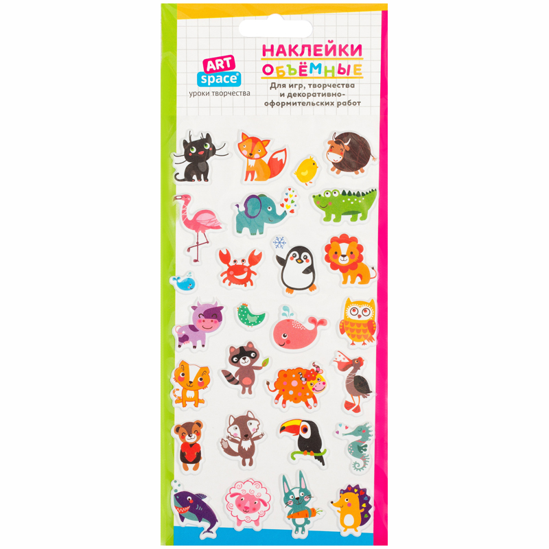 Наклейки объемные ArtSpace "Веселые зверушки", 10*19см, пакет, европодвес