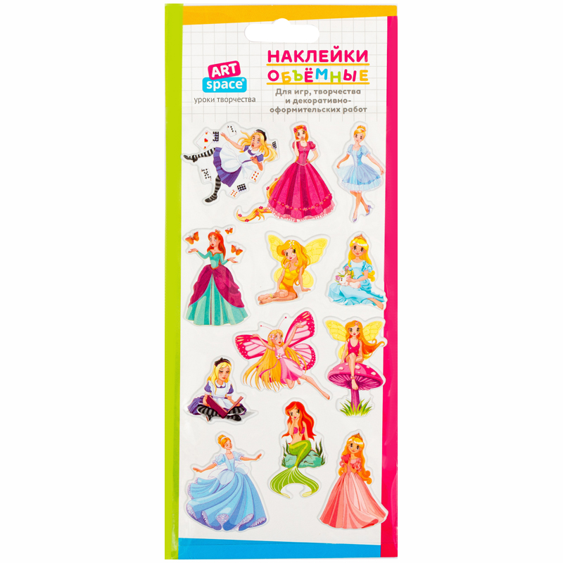 Наклейки объемные ArtSpace "Принцессы", 10*19см, пакет, европодвес