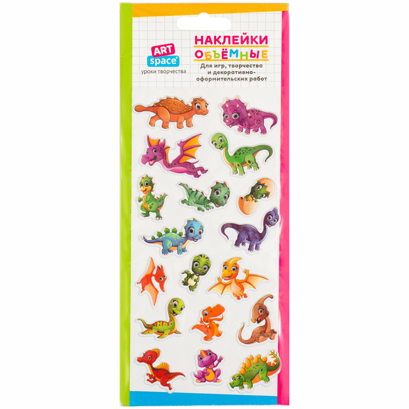 Наклейки объемные ArtSpace "Динозаврики", 10*19см, пакет, европодвес