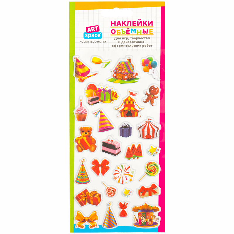 Наклейки объемные ArtSpace "Подарки", 10*19см, пакет, европодвес