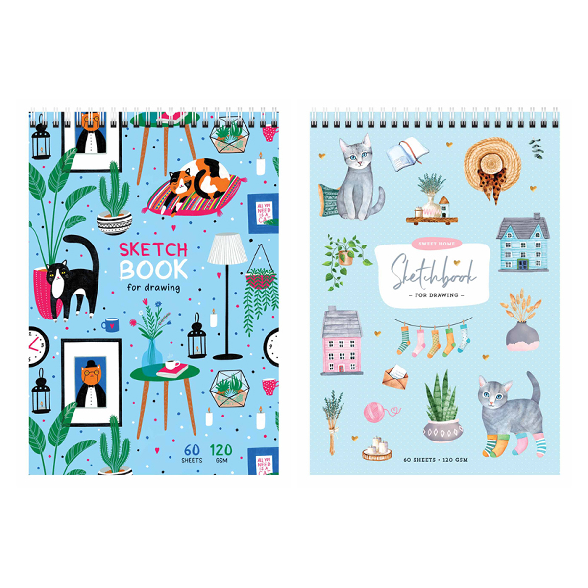Скетчбук 60л., А6 ArtSpace "Cats", на гребне, 120г/м2