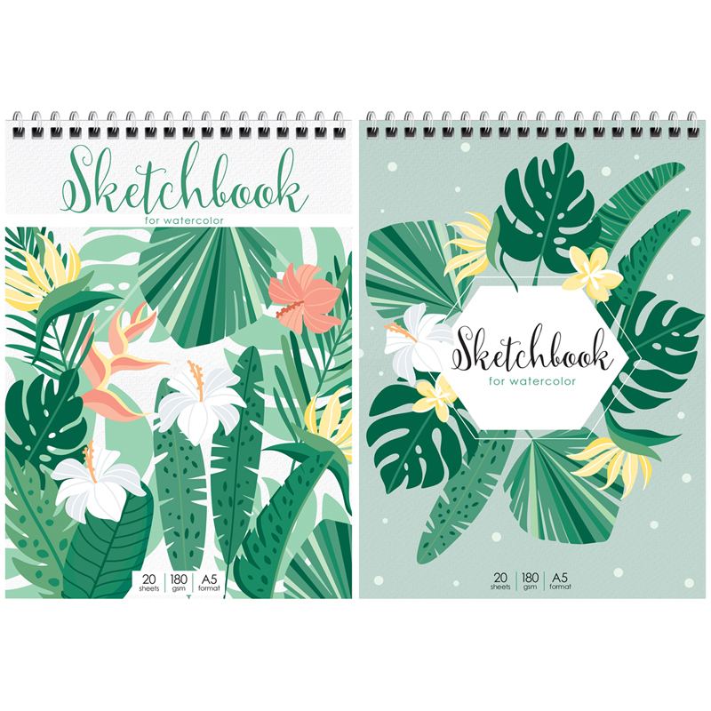 Скетчбук-блокнот для акварели 20л., А5 ArtSpace "Tropical plants", на гребне, 180г/м2