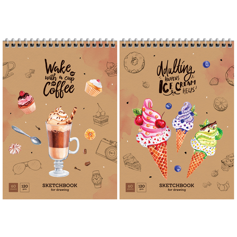 Скетчбук-блокнот 60л., А5 ArtSpace "Сладкая жизнь", на гребне, 120г/м2