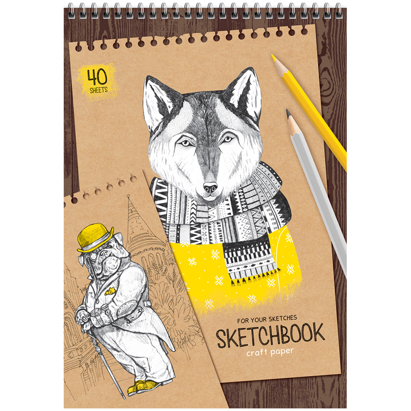 Скетчбук 40л., А4 ArtSpace "Craft style", на гребне, крафт, 80г/м2