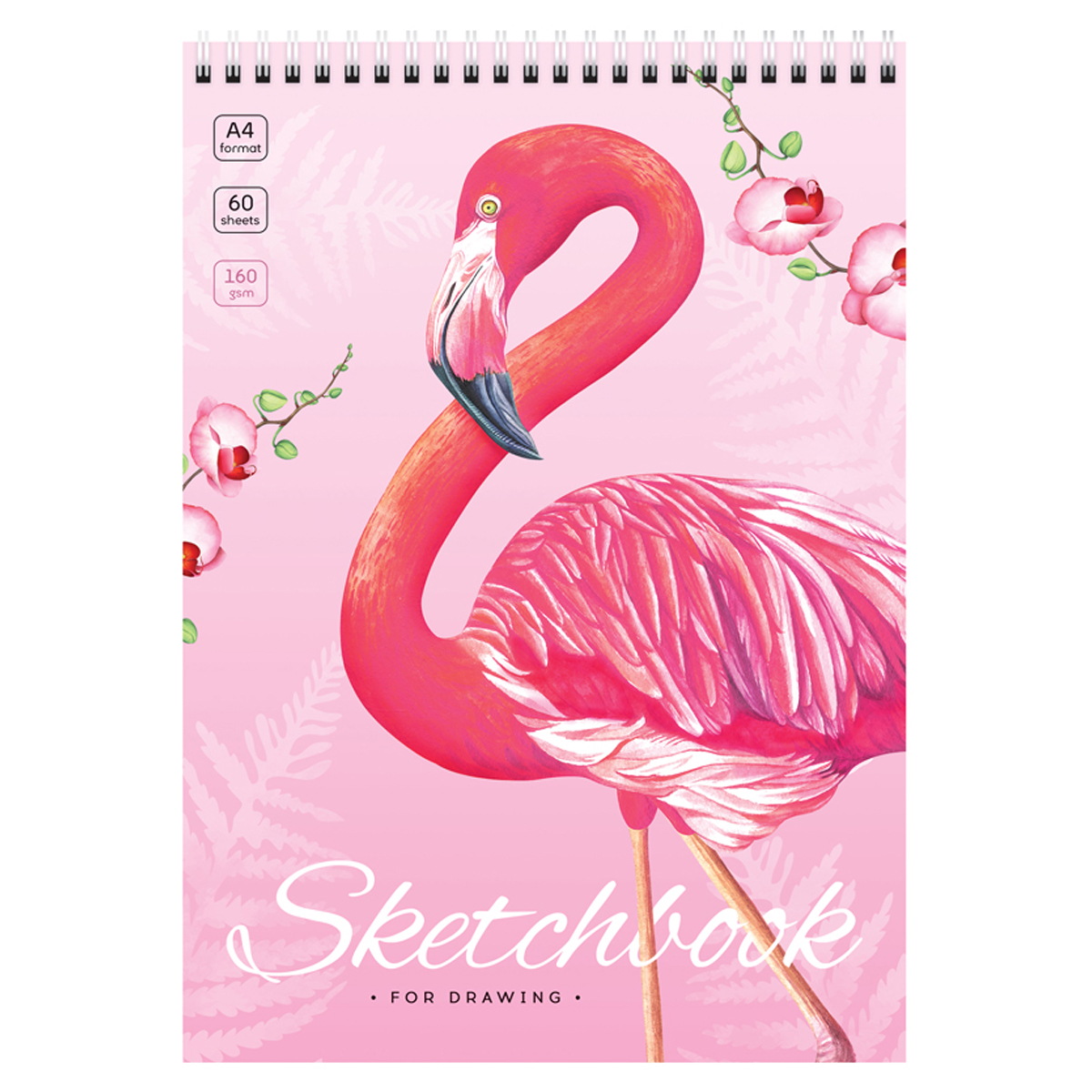 Скетчбук 60л., А4 ArtSpace "Flamingos", на гребне, 160г/м2