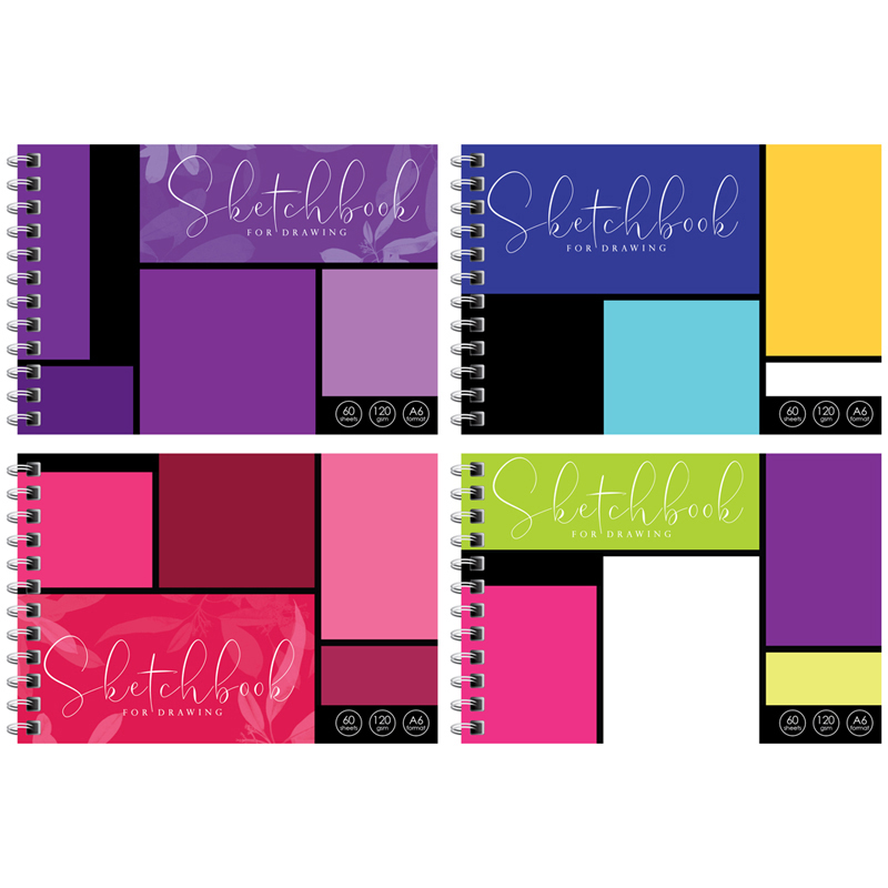 Скетчбук-блокнот 60л., А6 ArtSpace "Color geometry", на гребне, 120г/м2