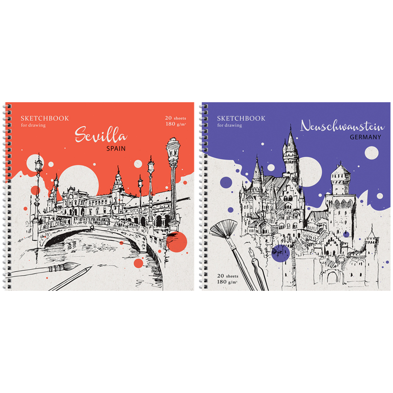 Скетчбук для акварели 20л., 250*250 ArtSpace "Countries", на гребне, 180г/м2