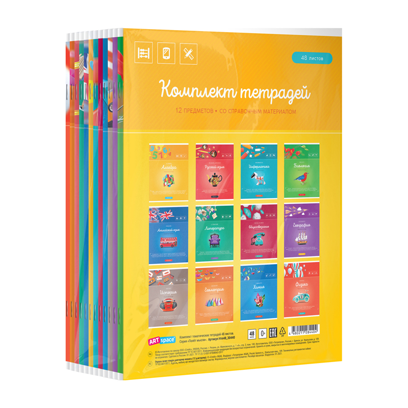 Комплект (12 шт.) предметных тетрадей 48л ArtSpace "Полет мысли", ВД-лак, эконом