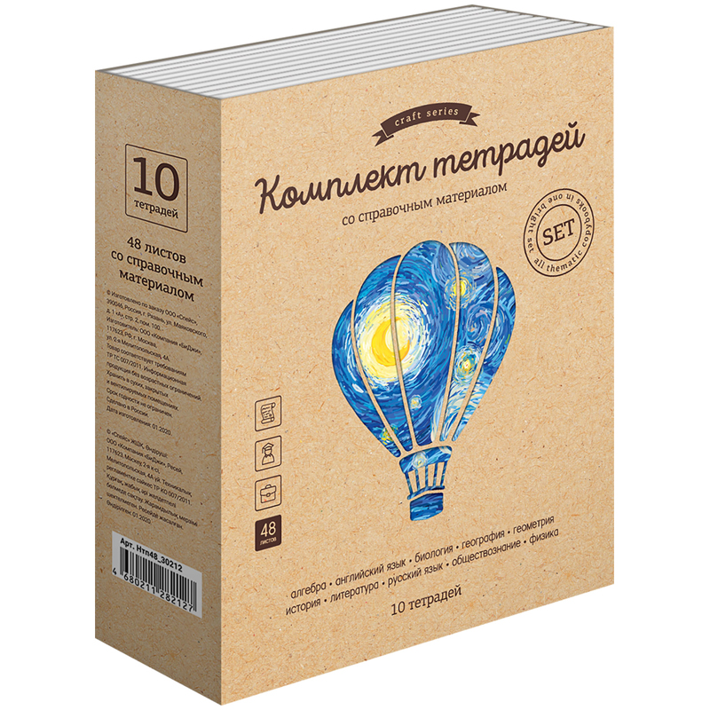 Комплект (10 шт.) предметных тетрадей 48л. ArtSpace "Яркий крафт", матовая ламинация, выб. УФ-лак