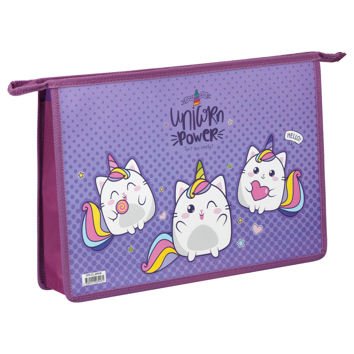 Папка для труда 2 отделения, А4, ArtSpace "Unicorn Power", 325*230*100мм, пластик, на молнии