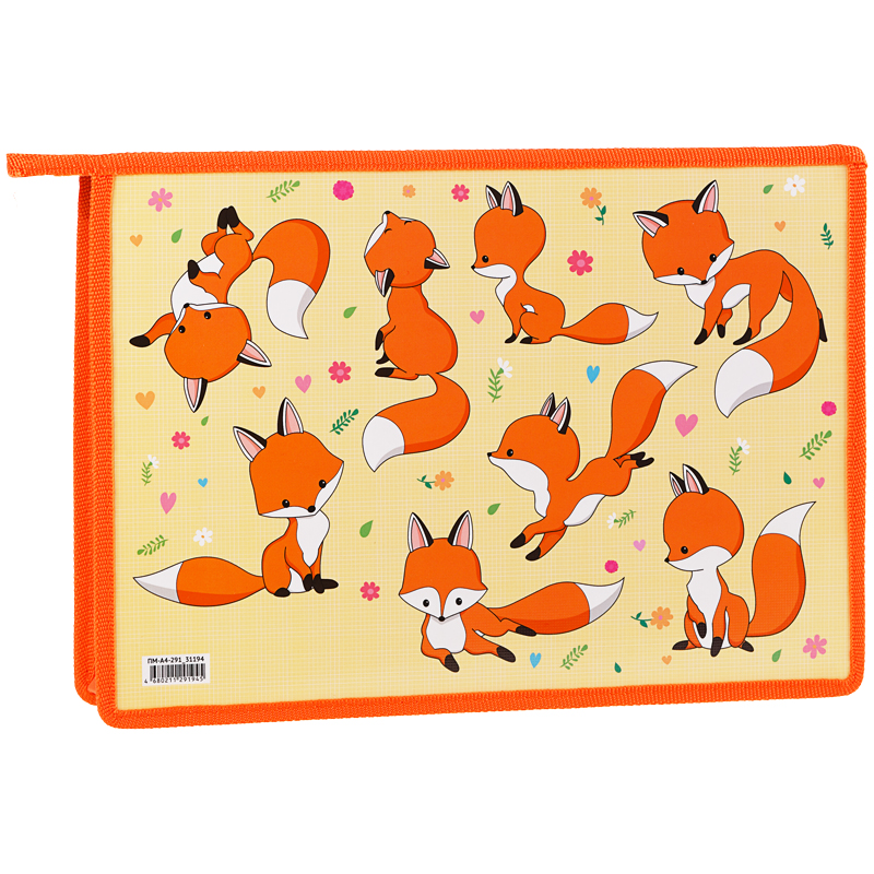Папка для тетрадей 1 отделение, А4, ArtSpace "Foxy", ламинированный картон, на молнии