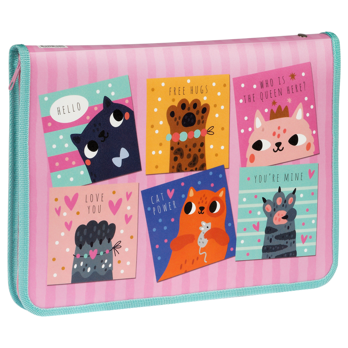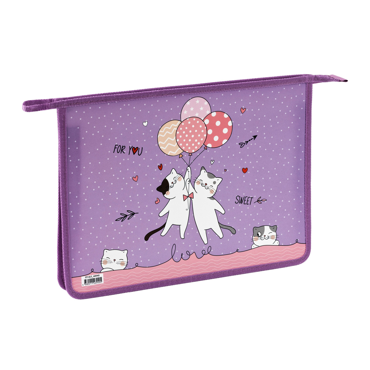 Папка для тетрадей 1 отделение, А4, ArtSpace "Sweet Cats", 340*240*40мм, пластик, на молнии