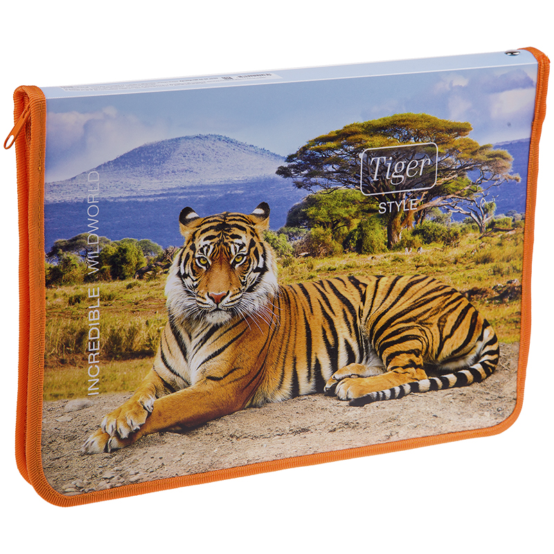 Папка для тетрадей 1 отделение, А4, ArtSpace "Дикие кошки. Tiger Style", пластик, молния вокруг