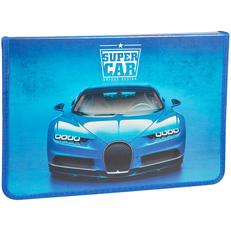 Папка для труда 1 отделение, А4, ArtSpace "Авто. Supercar", картон, молния вокруг, откид. планка