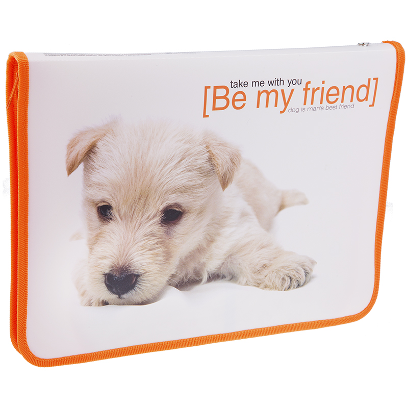 Папка для труда 1 отд., А4, ArtSpace "Домашние питомцы. Щенок", пластик, молния вокруг, откид.планка