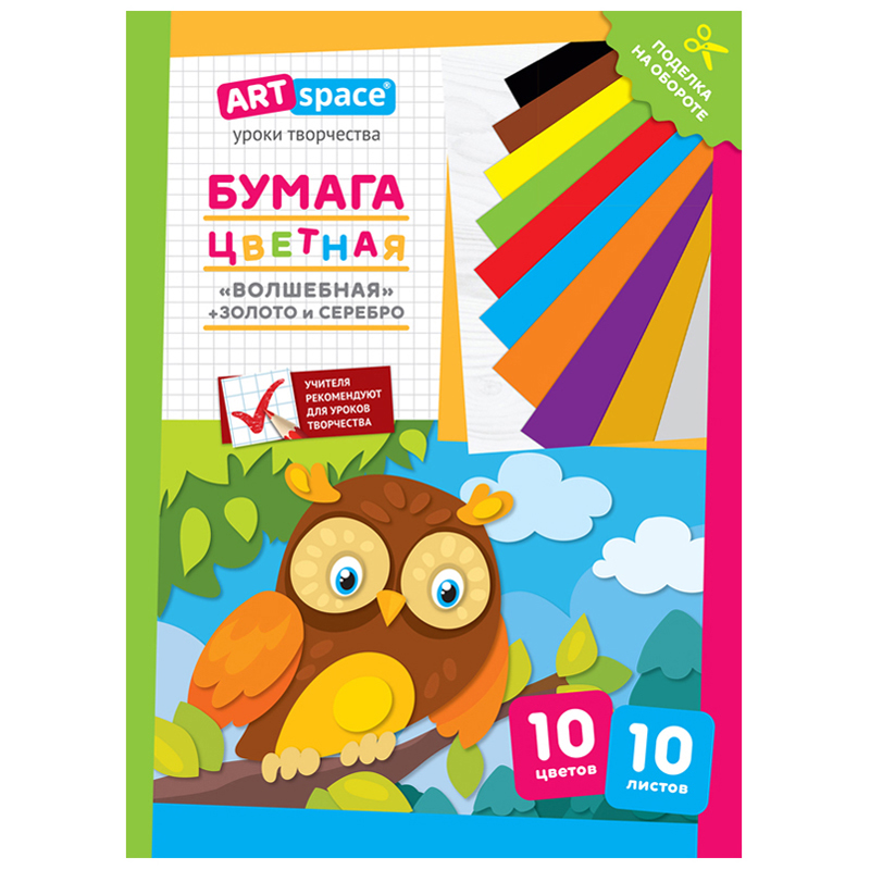 Цветная бумага газетная, А4, ArtSpace, 10л., 10цв., "Волшебная. Филин"