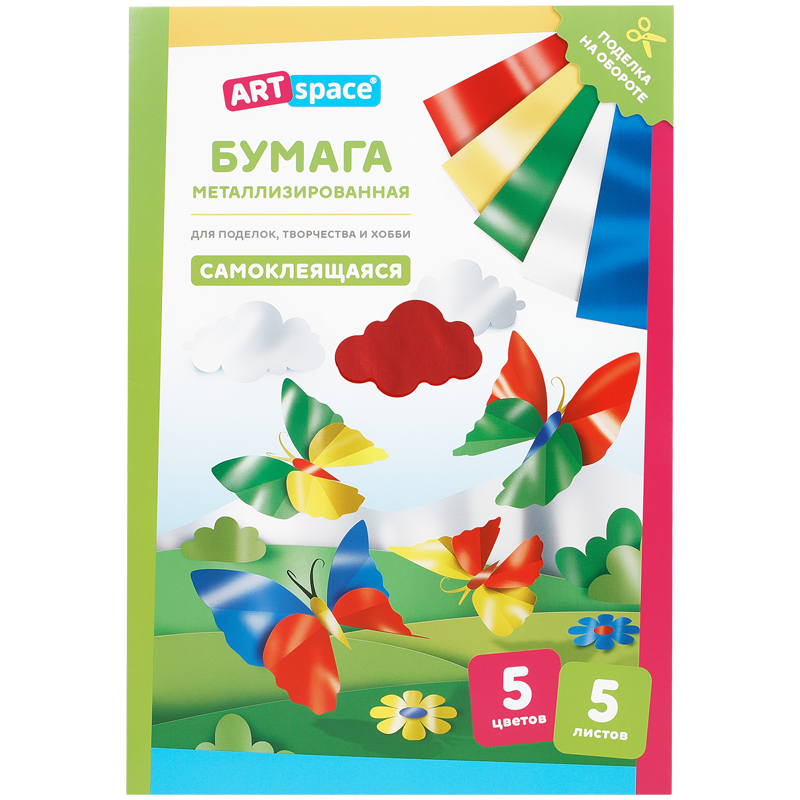 Бумага металлизированная А4, ArtSpace, 5л., 5цв., самоклеющаяся, в папке