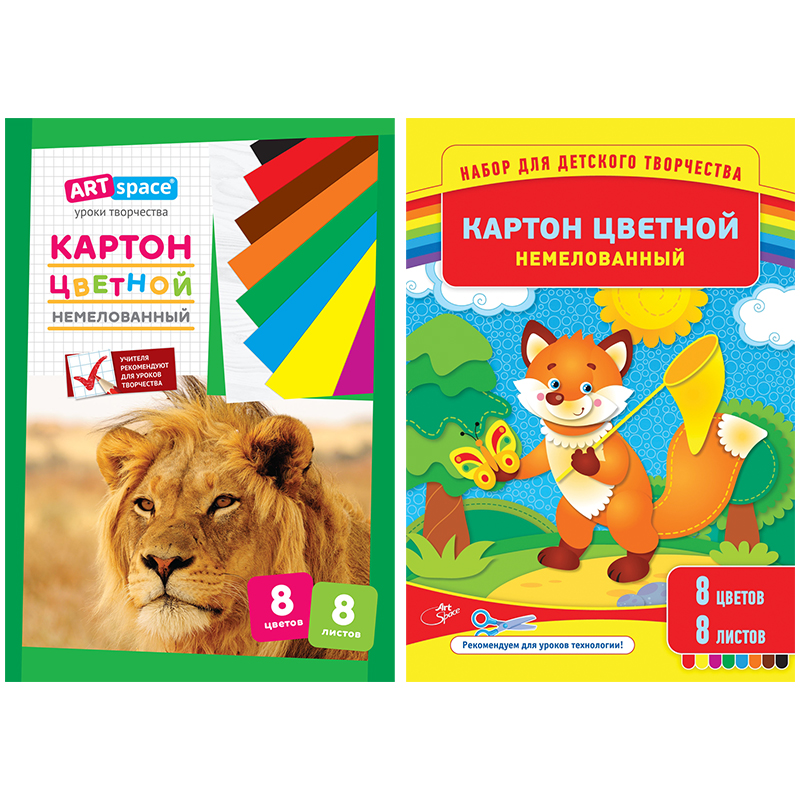 Картон цветной A4, ArtSpace, 8л., 8цв., немелованный, в папке
