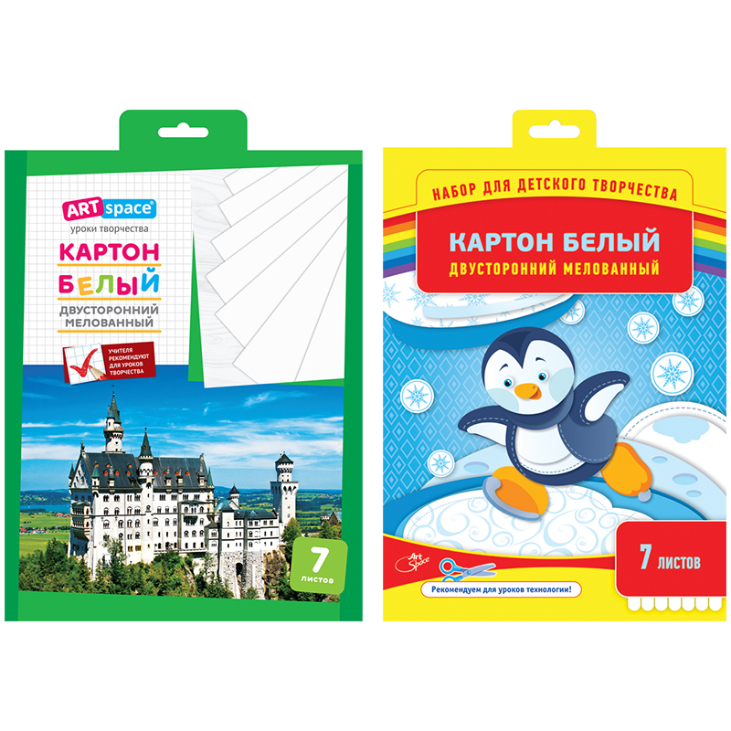 Картон белый двусторонний A4, ArtSpace, 7л., мелованный, в папке с европодвесом
