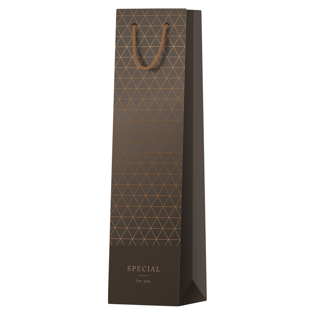 Пакет подарочный 12*36*8,5см ArtSpace "Special. Brown", матовое ламинирование, отд. фольгой, под бутылку