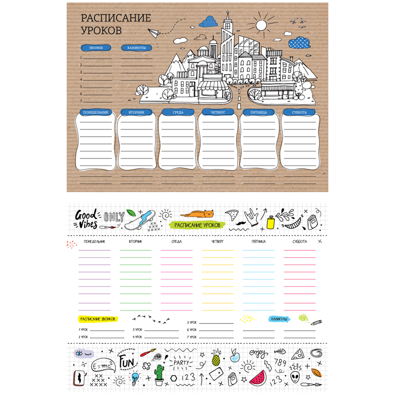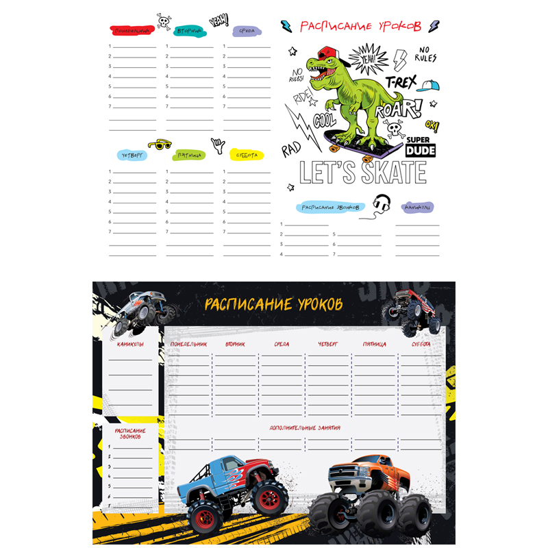 Расписание уроков с расписанием звонков А4 ArtSpace, "Пиши-стирай. Ride"