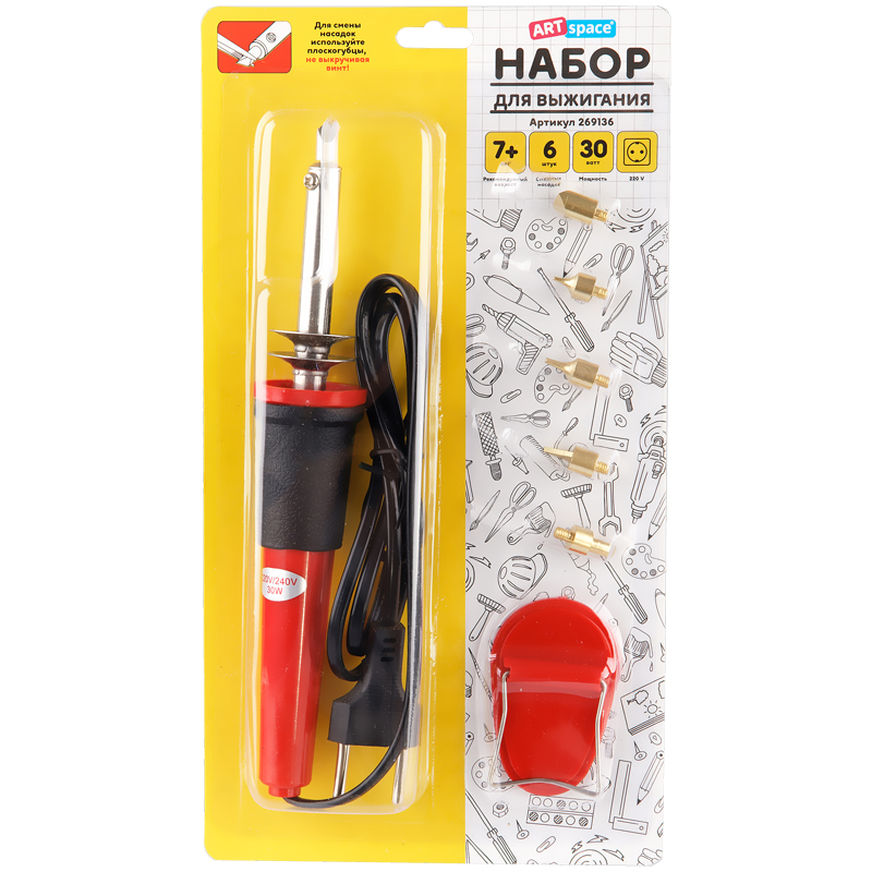 Прибор для выжигания многофункциональный ArtSpace, 6 сменных насадок, блистер