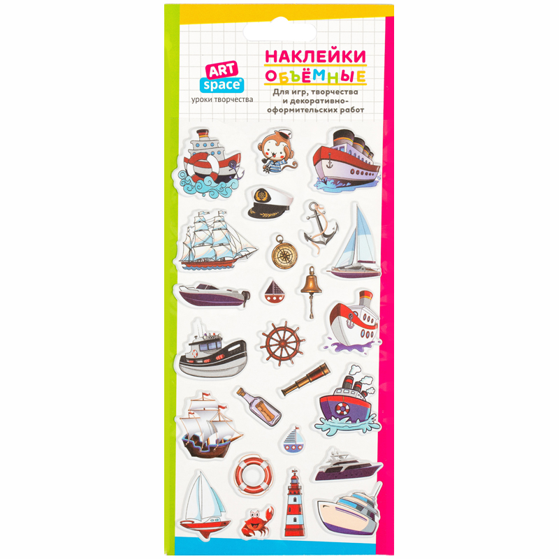 Наклейки объемные ArtSpace "Морское приключение", 10*19см, пакет, европодвес