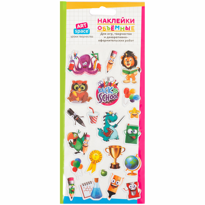 Наклейки объемные ArtSpace "Веселая школа", 10*19см, пакет, европодвес
