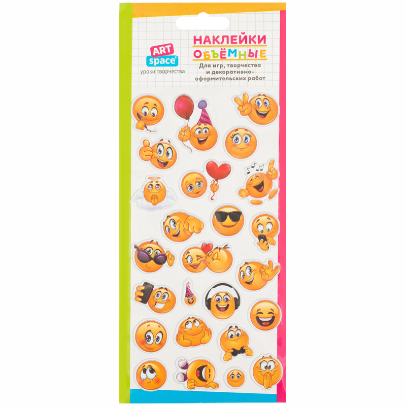 Наклейки объемные ArtSpace "Смайлики", 10*19см, пакет, европодвес