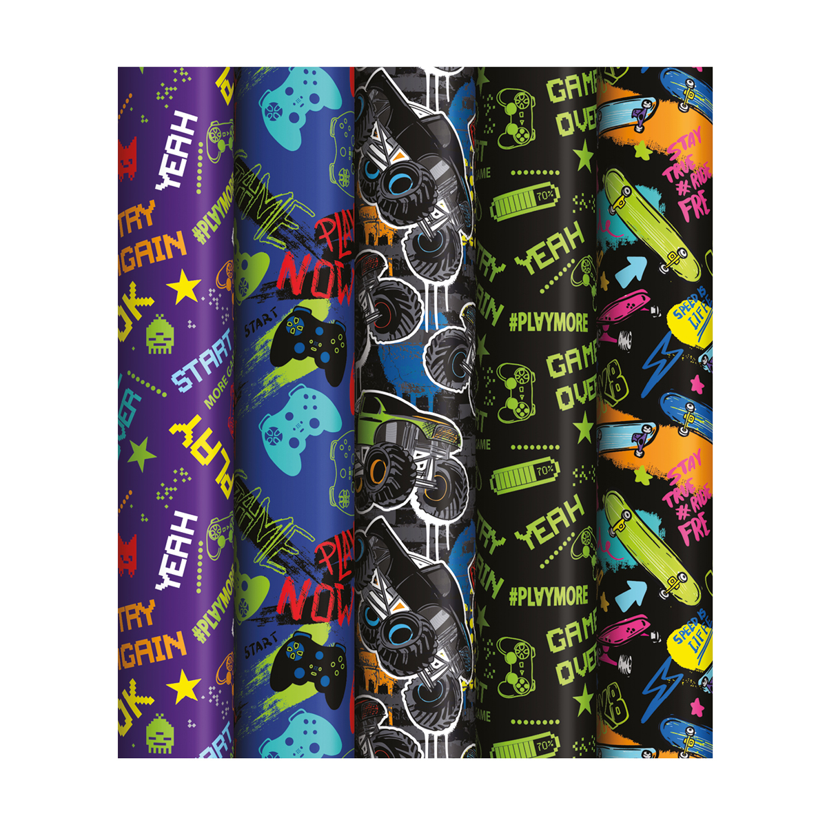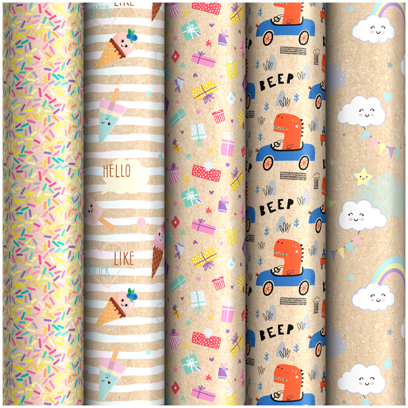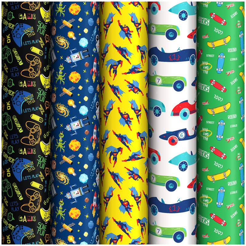 Упаковочная бумага глянц. 70*100см, ArtSpace "Играй, катай, летай!", 90г/м2, ассорти 5 дизайнов