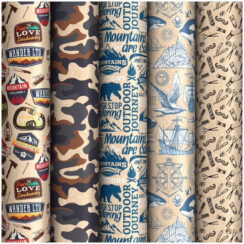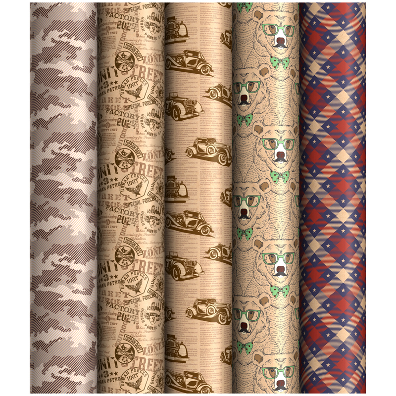 Упаковочная бумага крафт 70*100см, ArtSpace "Мужской стиль", 1 лист, 70г/м2, ассорти 5 дизайнов