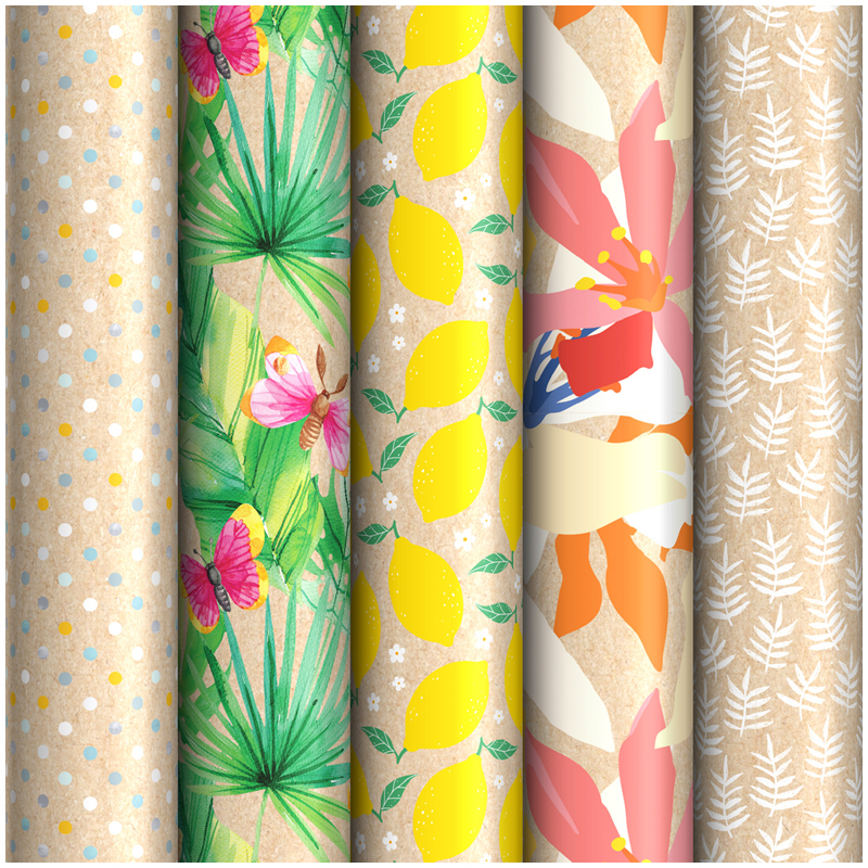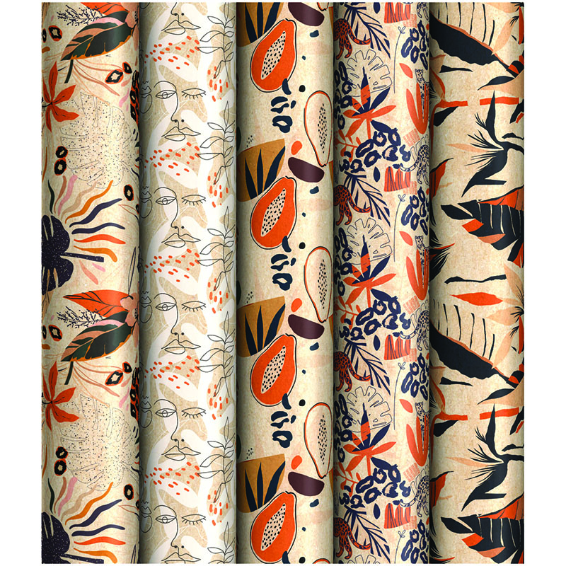 Упаковочная бумага крафт 70*100см, ArtSpace "Тропический стиль", 70г/м2, ассорти 5 дизайнов
