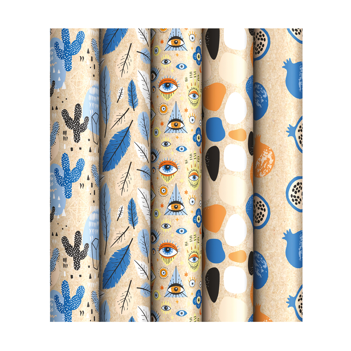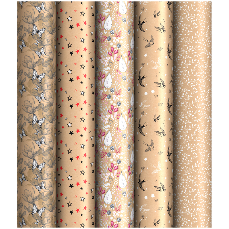Упаковочная бумага крафт 70*100см, ArtSpace "Узоры", 70г/м2, ассорти 5 дизайнов
