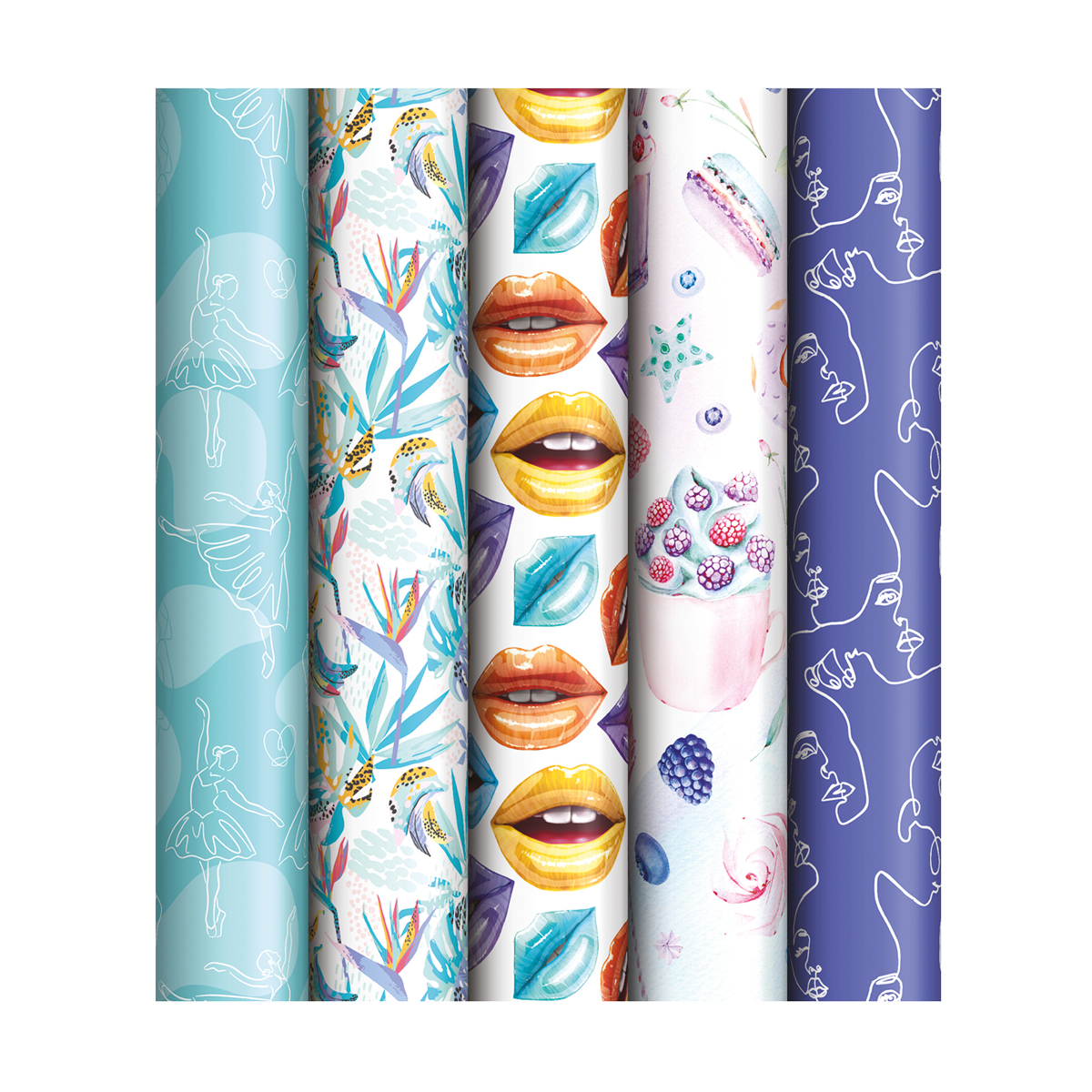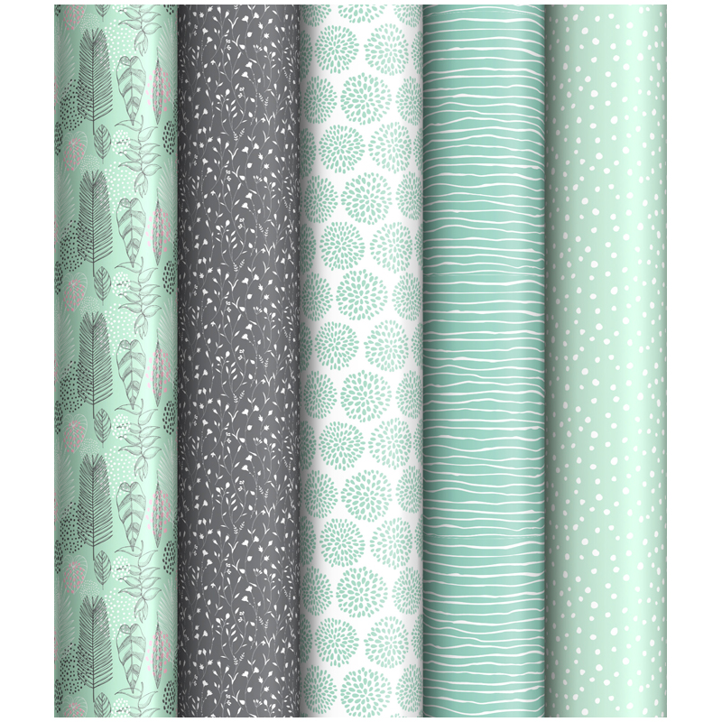 Упаковочная бумага глянц. 70*100см, ArtSpace "Minty", 1 лист, 65г/м2, ассорти 5 дизайнов