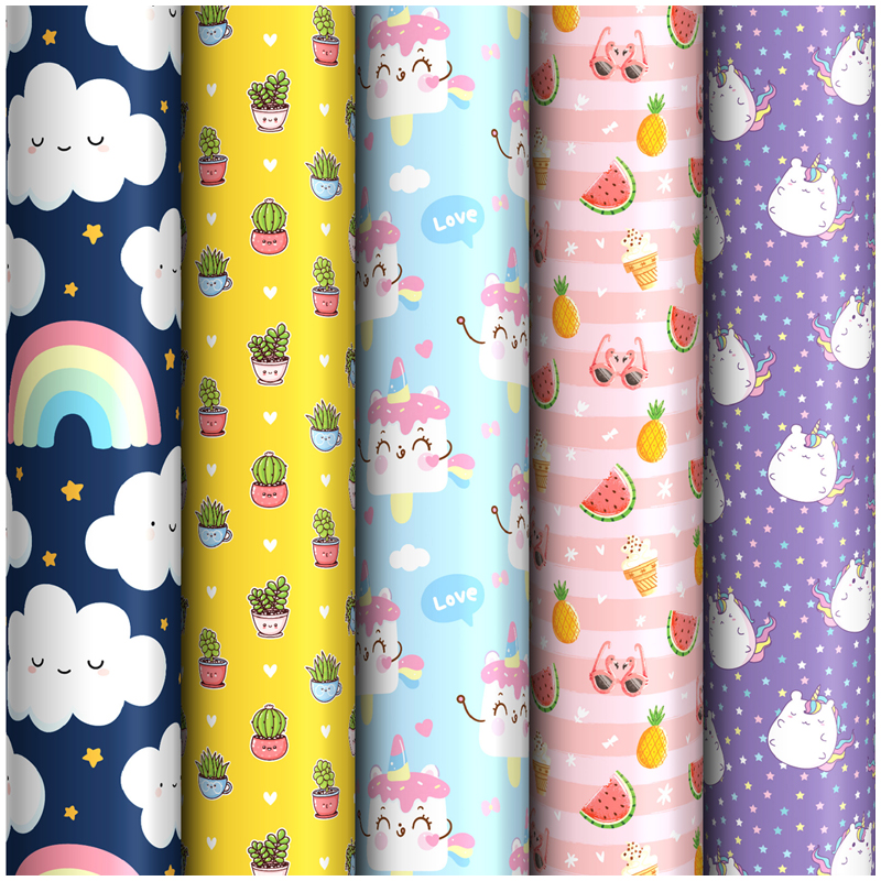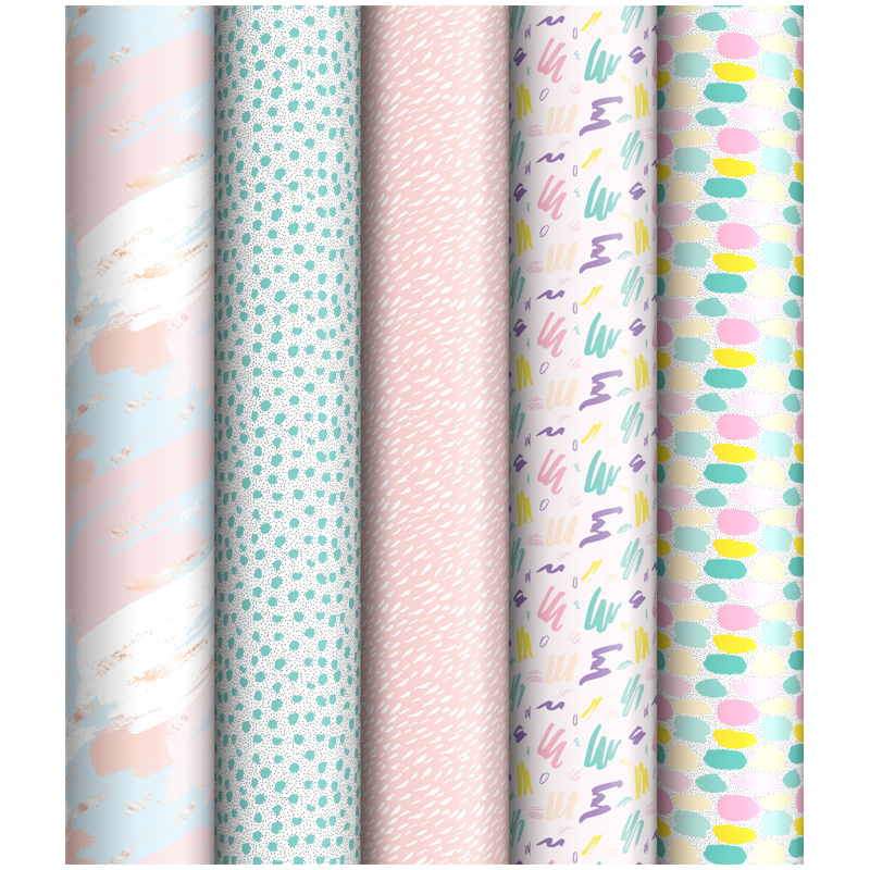 Упаковочная бумага глянц. 70*100см, ArtSpace "Pastel", 1 лист, 65г/м2, ассорти 5 дизайнов