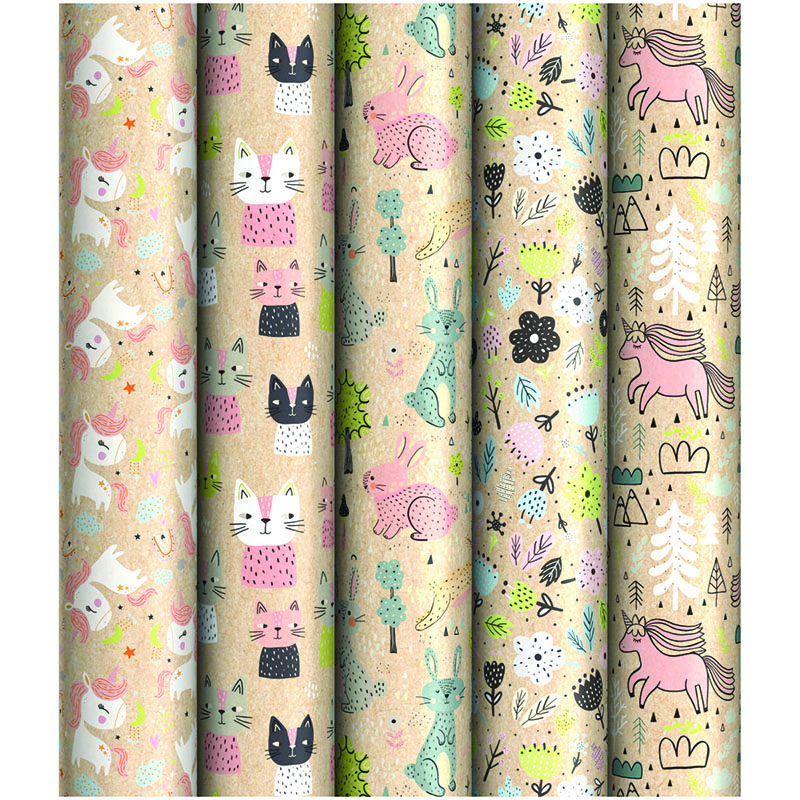 Упаковочная бумага крафт 70*100см, ArtSpace "Милые животные", 70г/м2, ассорти 5 дизайнов