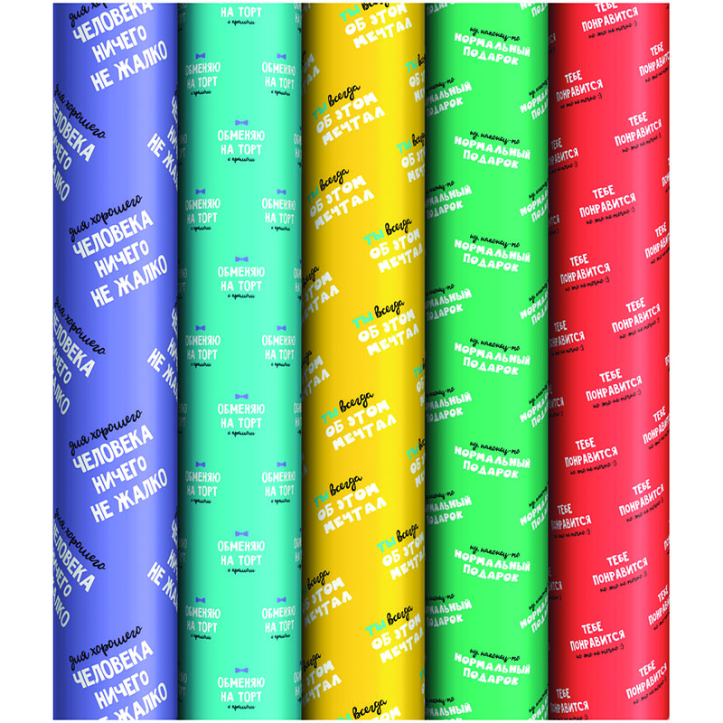 Упаковочная бумага глянц. 70*100см, ArtSpace "Радужный текст", 90г/м2, ассорти 5 дизайнов