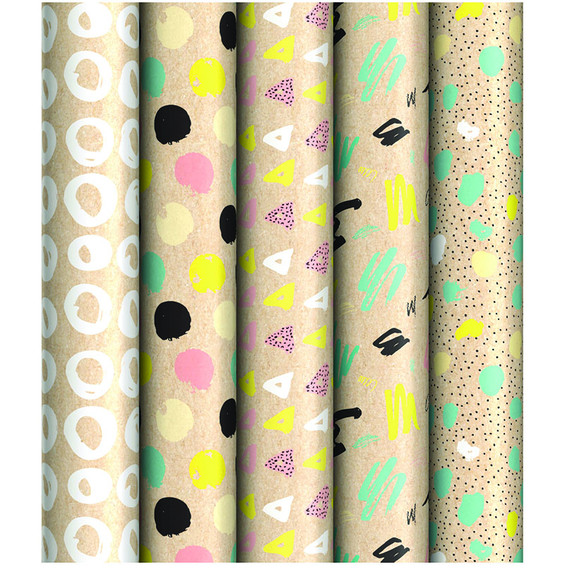 Упаковочная бумага крафт 70*100см, ArtSpace "Абстракция", 70г/м2, ассорти 5 дизайнов
