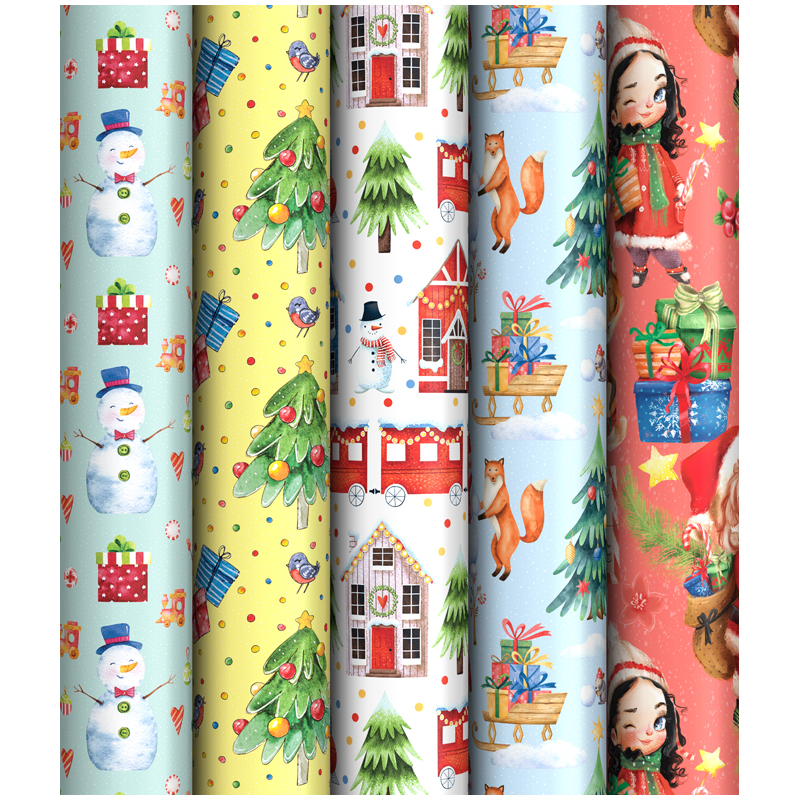 Упаковочная бумага глянц. 70*100см, ArtSpace "Новогоднее настроение", 90г/м2, ассорти 5 дизайнов