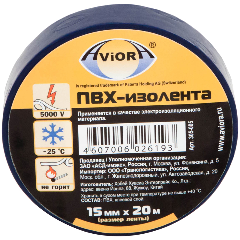 Изолента Aviora "Профессиональная", ПВХ 19мм*20м, синяя