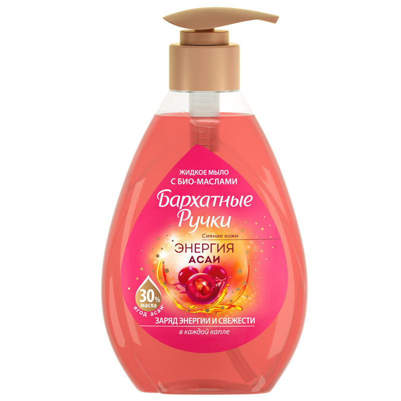 Мыло жидкое Бархатные ручки, с био-маслом асаи, с дозатором, 240мл